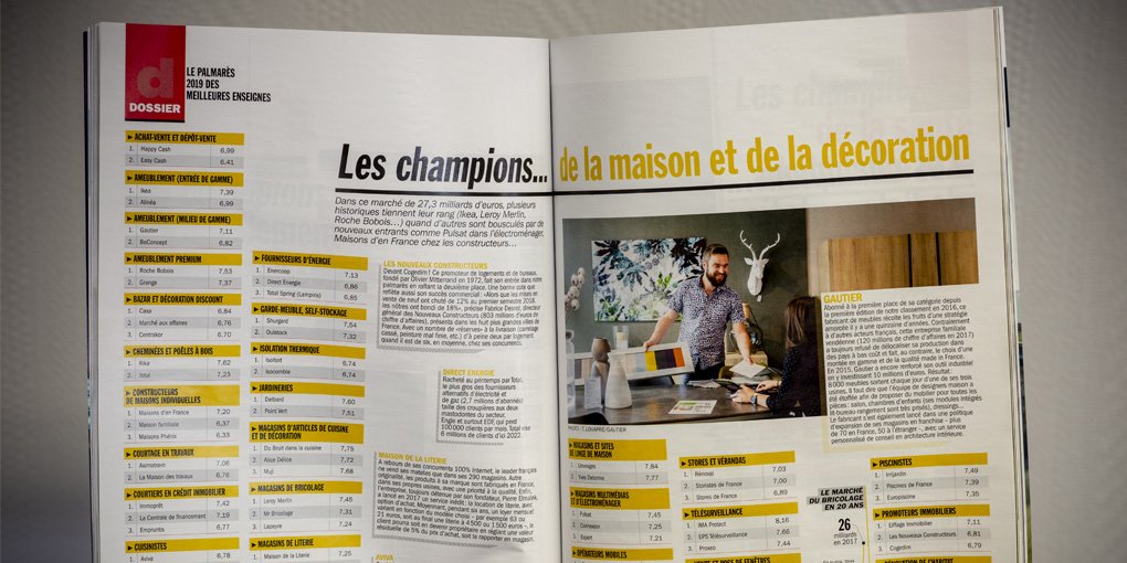 Pour la 3ème année consécutive, GAUTIER a été élu meilleure enseigne d'équipement de la maison dans la catégorie milieu de gamme par le magazine Capital. Cette reconnaissance n'est pas fortuite puisque 20 000 consommateurs ont été appelé à voter et noter les marques sur plusieurs critères. Les équipes de Gautier prouvent une fois de plus leur excellence et nous sommes extrêmement fiers de compter leur PDG, David Soulard, comme Président de notre réseau !